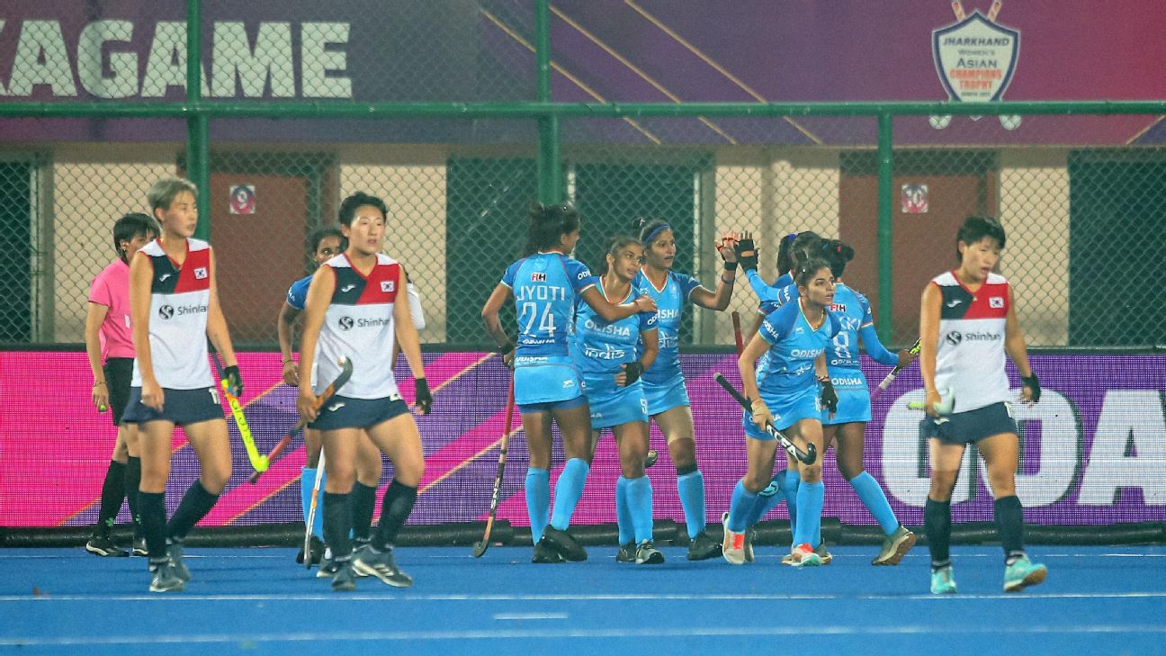 인도는 토요일 란치에서 열린 자르칸드 여자 아시아챔피언스컵 결승에서 한국을 3-0으로 꺾고 결승에 진출했다.